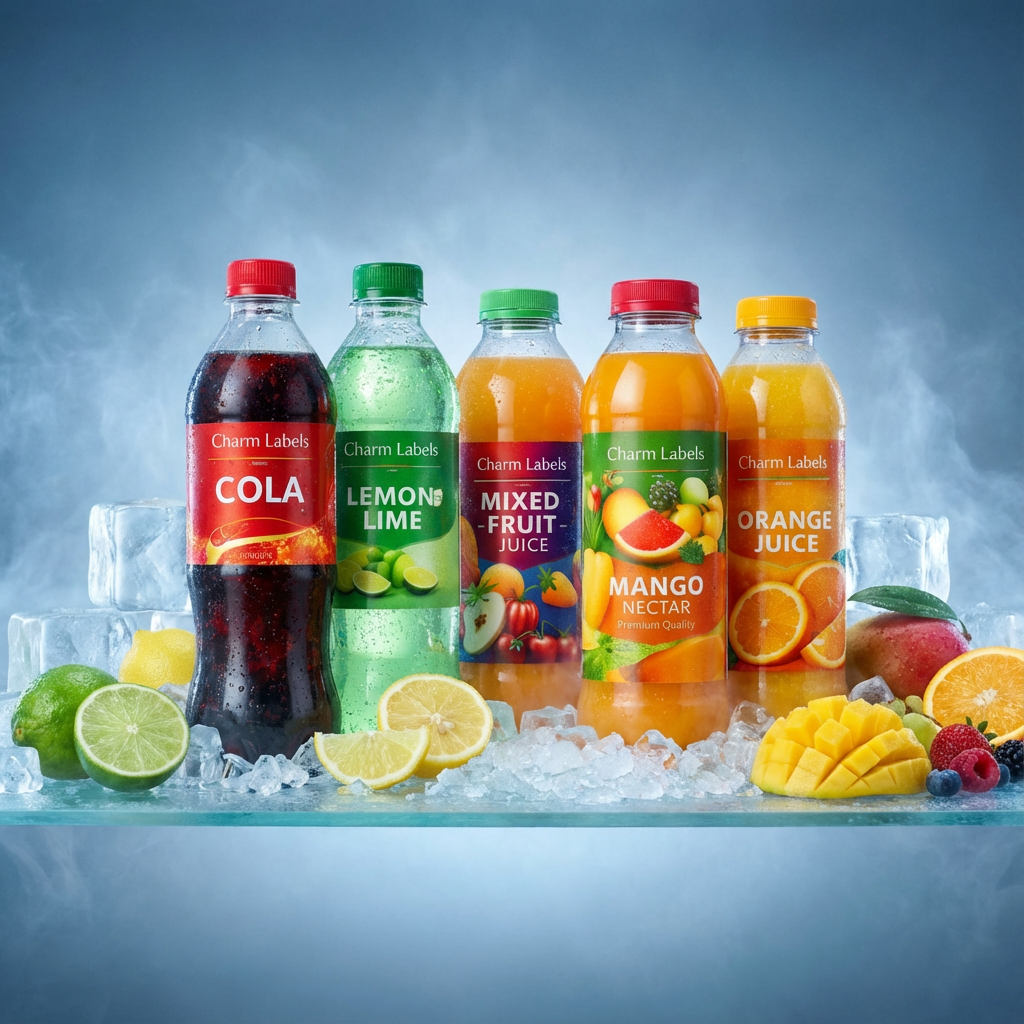 Beverage labels are crafted to enhance shelf appeal while maintaining durability under chilled and wet conditions. Our labels are suitable for water bottles, soft drinks, juices, energy drinks, and flavoured beverages.